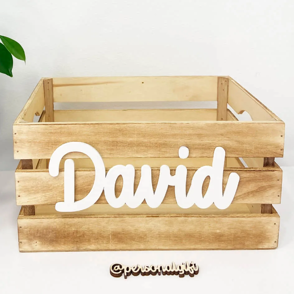 Caja de madera natural con el nombre o la palabra que tú elijas.